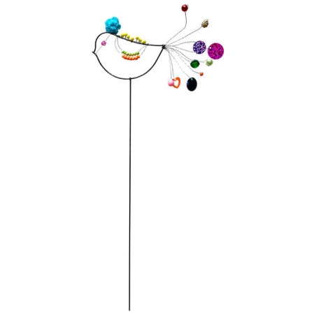 Liebevoll handgearbeiteter Stab mit einem farbenfrohem Vogel aus Perlen