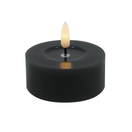 Täuschend echte LED-Kerze als Maxi-Teelicht in edlem schwarz zu einem tollem Preis-Leistung-Verhältnis