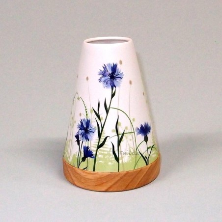 Teelichthalter aus feinem durchscheinendem Porzellan auf Holzsockel mit Teelichteinsatz aus Metall